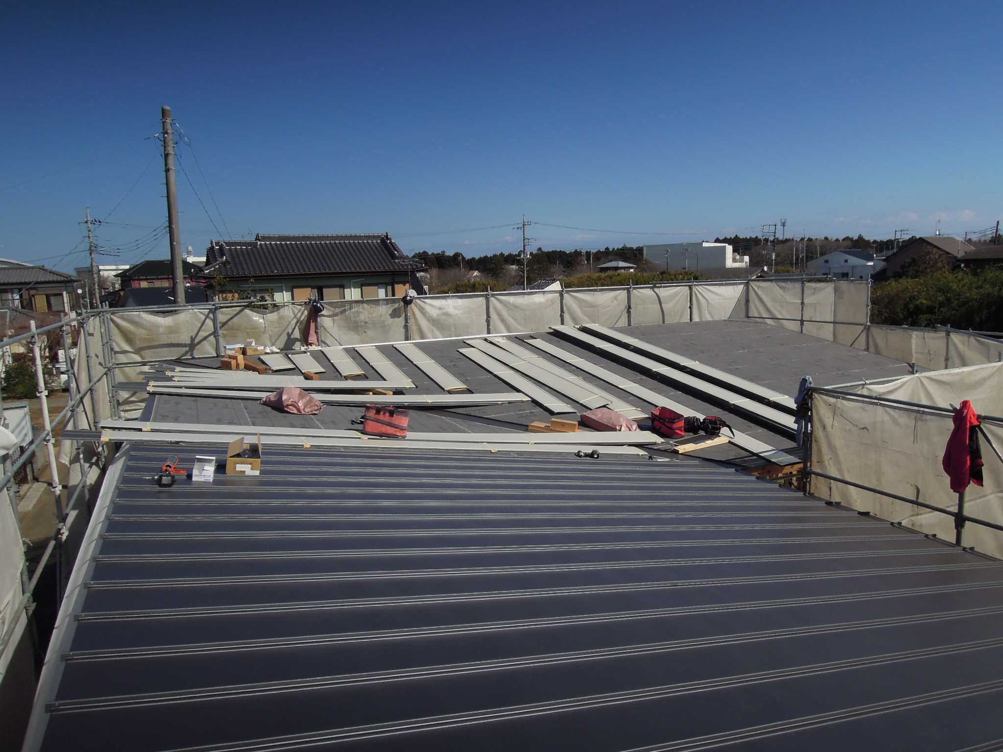 本日は屋根工事。 ガルバリウム鋼板の縦平葺き。 端部は全て手加工です。 dscn8033     dscn8035