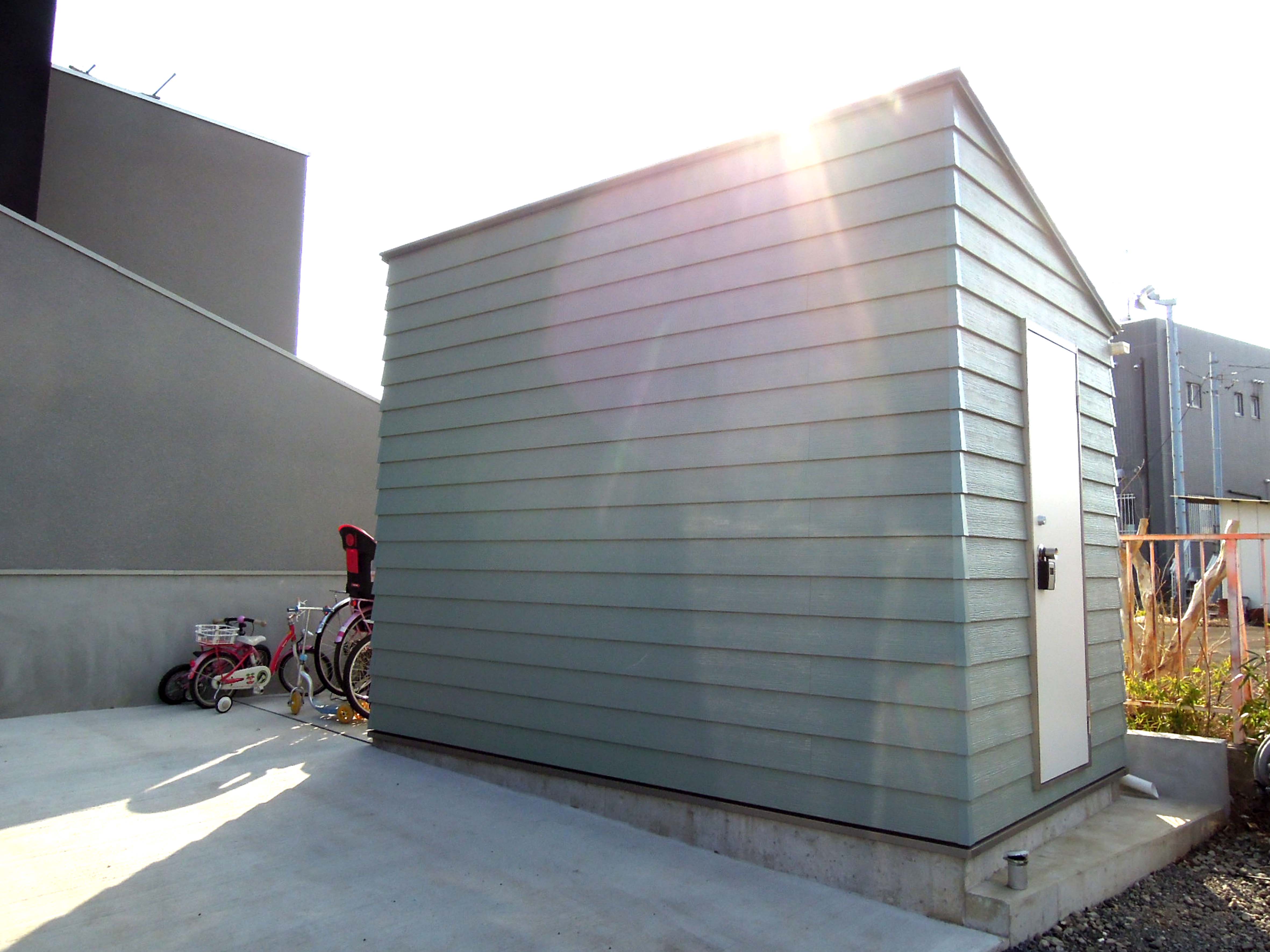 屋外物置の工事。 img_5654 img_5660   ラップサイディングを使った、おしゃれな「アメリカン物置」の完成です。