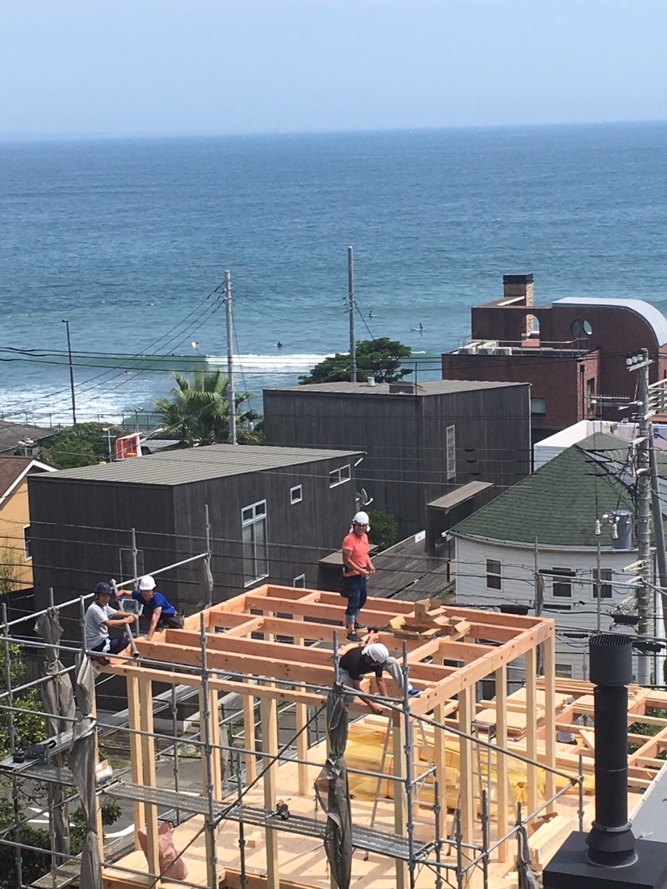 鎌倉市で新築工事中の店舗兼用住宅。 崖を掘削し、地下がコンクリート造、1~2階が木造です。 1階、2階からは、鎌倉の海が一望できます。 本日無事上棟です。 img_3274 img_3304 img_3297